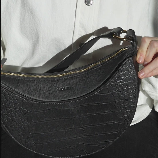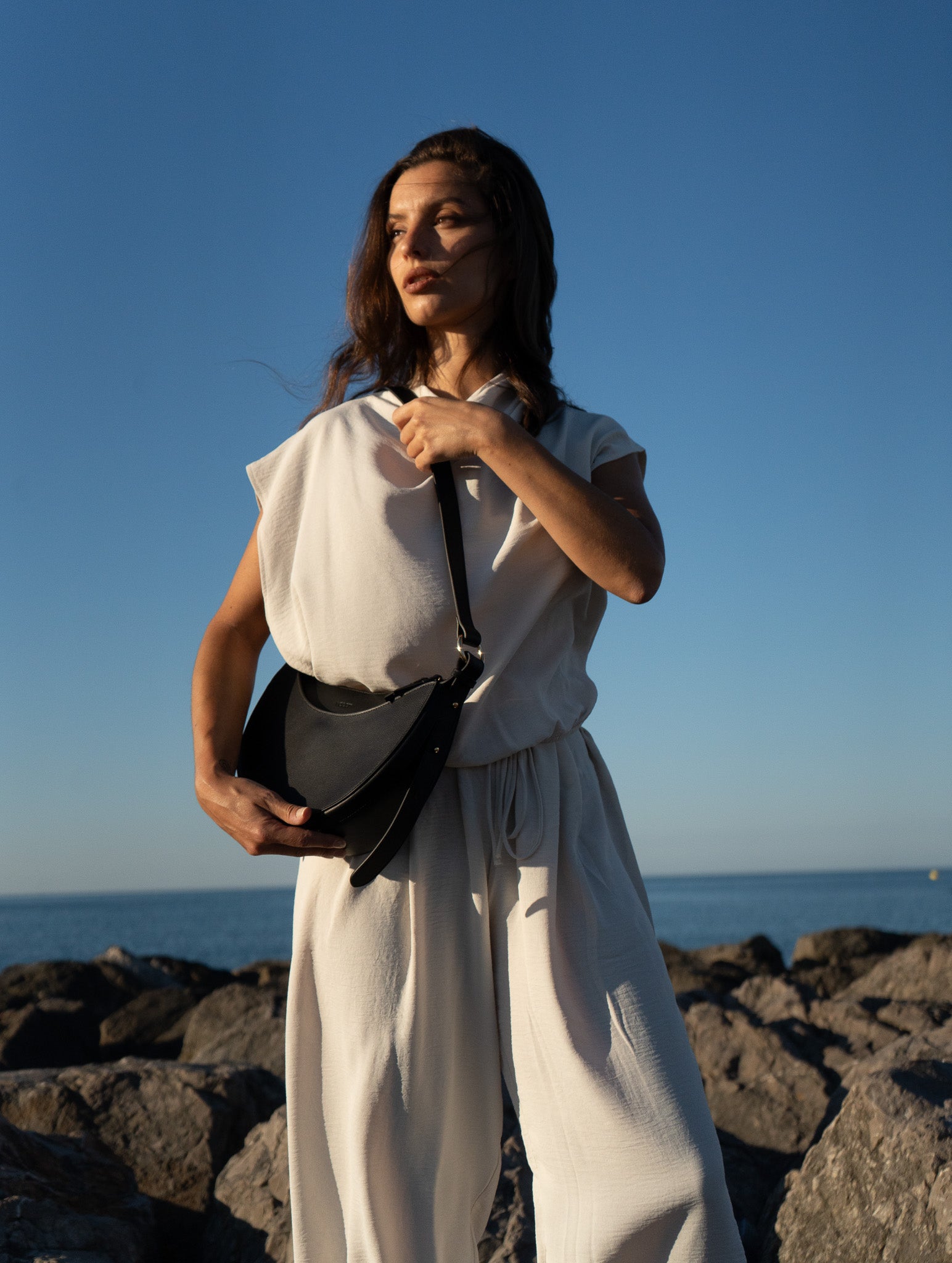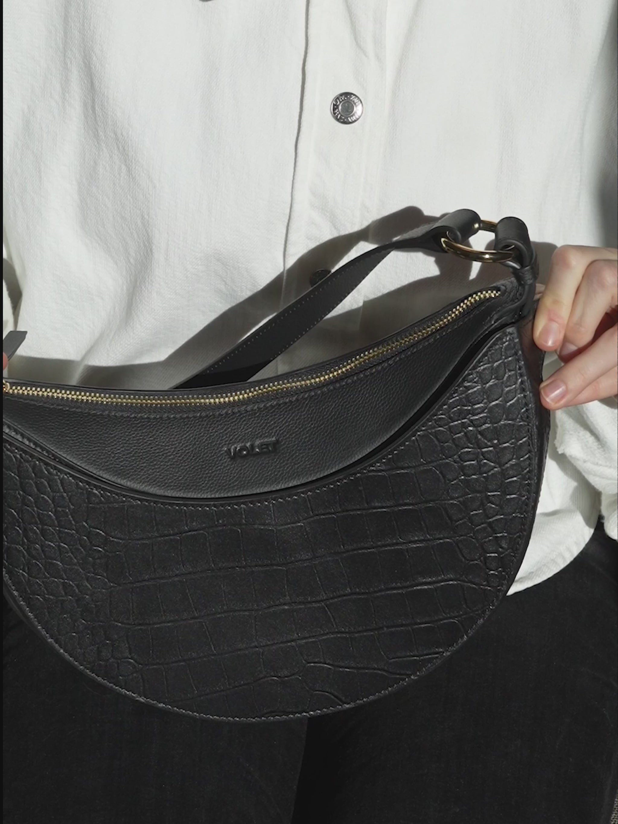 Die Mylène Handtasche begeistert mit ihrer geschwungenen Silhouette und einer abnehmbaren Fronttasche, die sich im Handumdrehen jedem Outfit anpassen lässt. Ihr aktuelles halbmondförmiges Design bietet die ideale Größe für den stilvollen Einsatz bei Tag und Nacht. Gefertigt aus hochwertigem, genarbtem italienischem Premium Leder, vereint sie Eleganz und Vielseitigkeit.